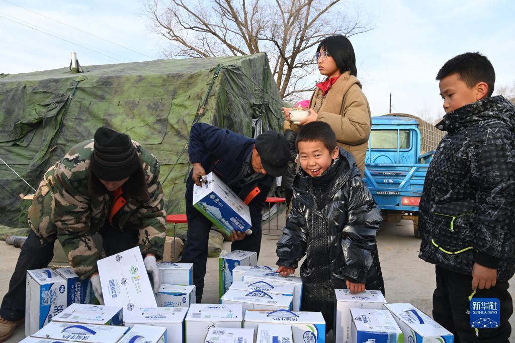 甘肃省临夏州积石山县6.2级地震发生后,各方力量驰援一线,中央救灾物资以及社会捐赠物资持续不断运抵,帮助受灾群众渡过难关。