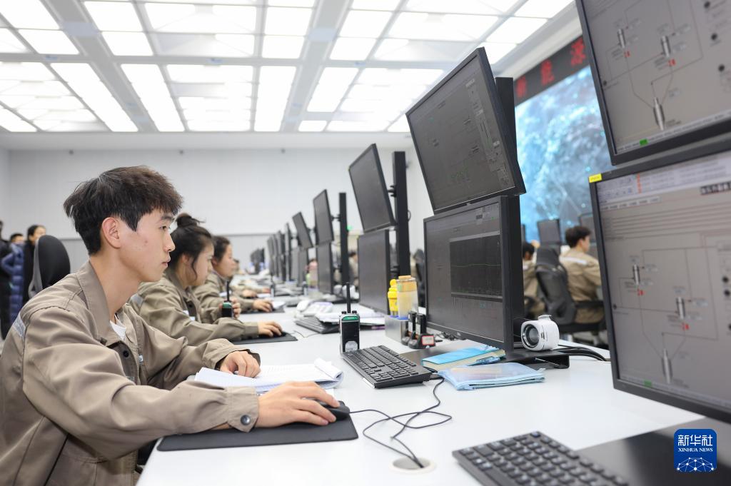 12月23日,在新疆生产建设兵团第七师胡杨河市一家新能源企业,员工在生产线控制中心工作。