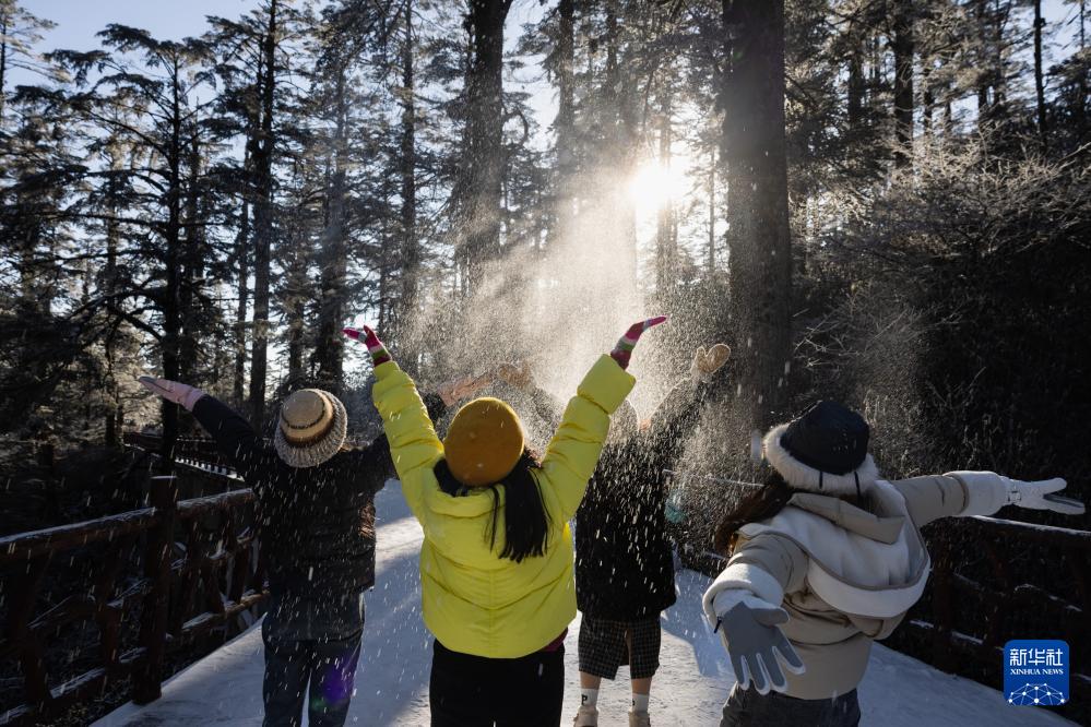 冬季,位于四川省洪雅县的瓦屋山被冰雪覆盖,一片银装素裹,吸引众多游客。