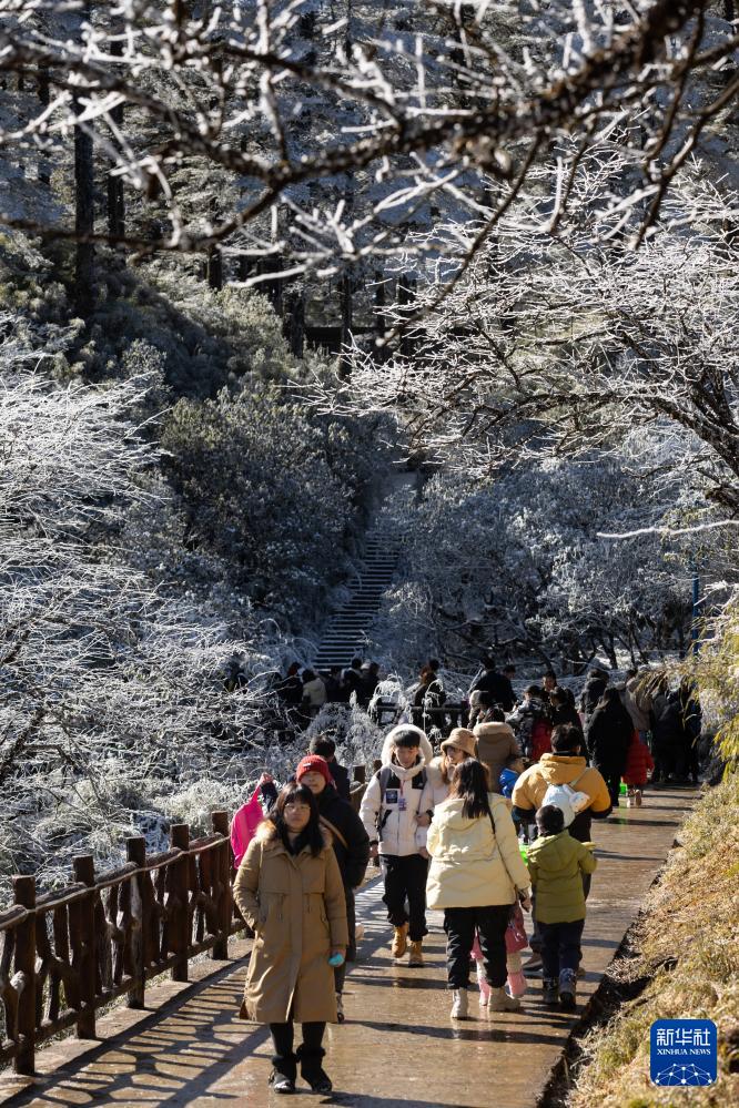 冬季,位于四川省洪雅县的瓦屋山被冰雪覆盖,一片银装素裹,吸引众多游客。