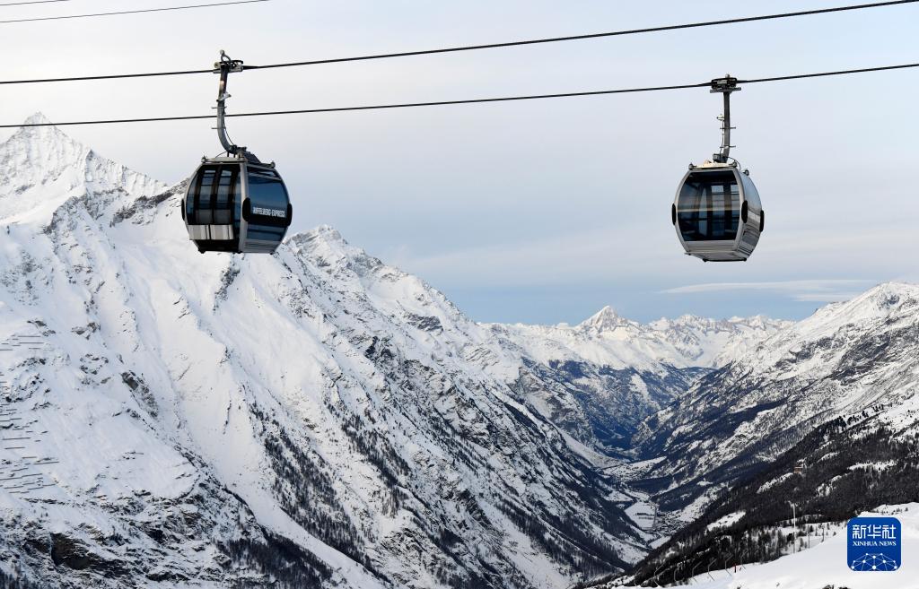 这是12月10日在瑞士采尔马特拍摄的山间缆车。