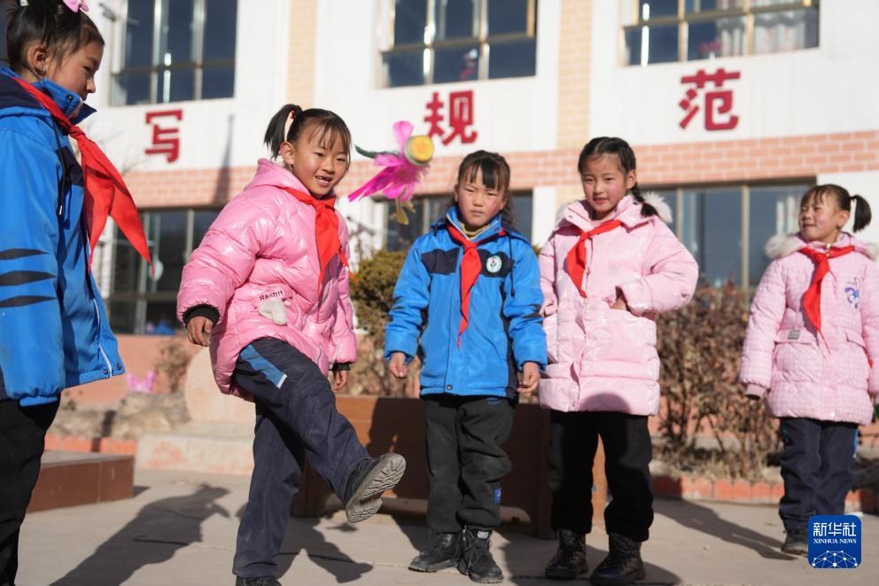 12月25日,积石山县柳沟乡阳山希望小学的学生在课间做游戏。