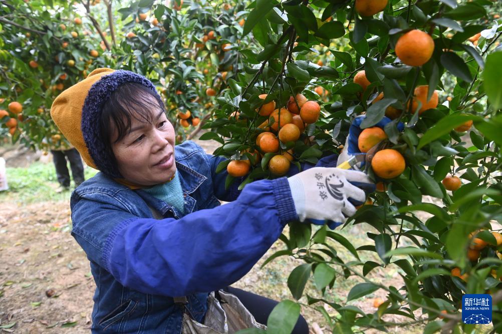 12月25日,在广西百色市乐业县新化镇百坭村,当地村民在采摘砂糖橘。
