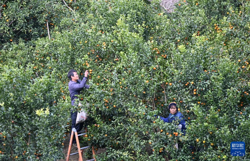 12月25日,在广西百色市乐业县新化镇百坭村,当地村民在采摘砂糖橘。