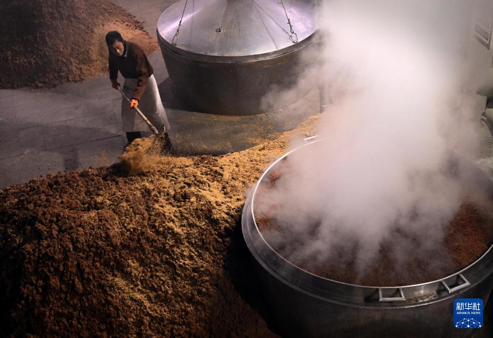 寒冬时节,河南省宝丰县宝丰酒业有限公司的酿造车间却热气蒸腾,一片忙碌景象。河南省宝丰县酿酒业历史悠久,是中国传统蒸馏酒发源地之一。由于气温适宜,每年秋冬季是一年中最忙碌的时间。宝丰酒采用传承近千年的“六艺酿酒法”传统技艺,即选料、制曲、蒸粮、摊晾、入缸、蒸馏,期间需要经过一百余道工序,生动展现了中国传统酿酒技艺的匠心独运。