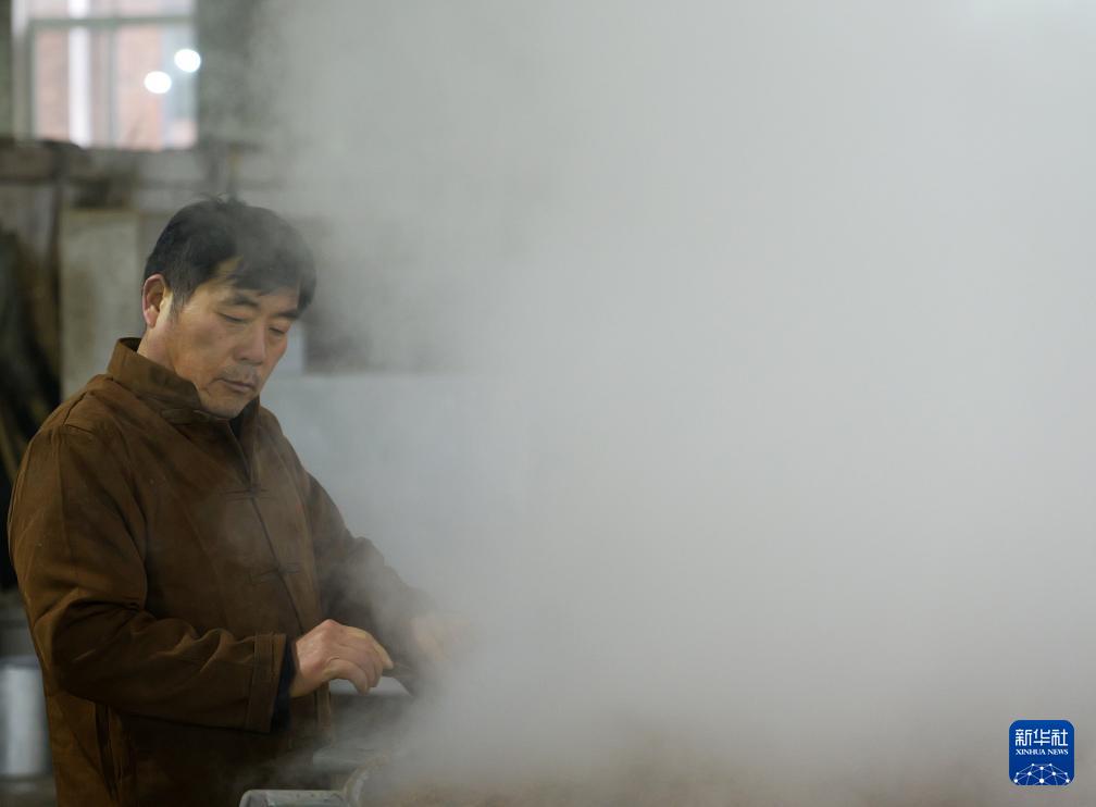 寒冬时节,河南省宝丰县宝丰酒业有限公司的酿造车间却热气蒸腾,一片忙碌景象。河南省宝丰县酿酒业历史悠久,是中国传统蒸馏酒发源地之一。由于气温适宜,每年秋冬季是一年中最忙碌的时间。宝丰酒采用传承近千年的“六艺酿酒法”传统技艺,即选料、制曲、蒸粮、摊晾、入缸、蒸馏,期间需要经过一百余道工序,生动展现了中国传统酿酒技艺的匠心独运。