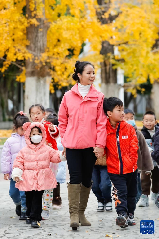 雍吉带着孩子们在户外活动(12月15日摄)。