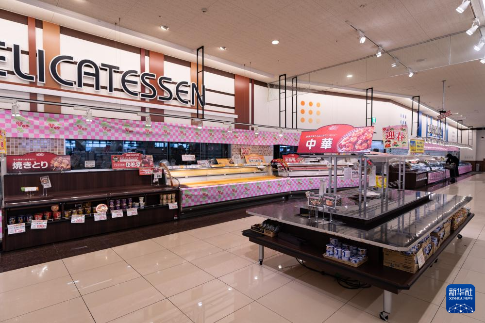 这是1月2日在日本石川县羽咋郡一家大型超市拍摄的食品货架。超市部分物资发生短缺。