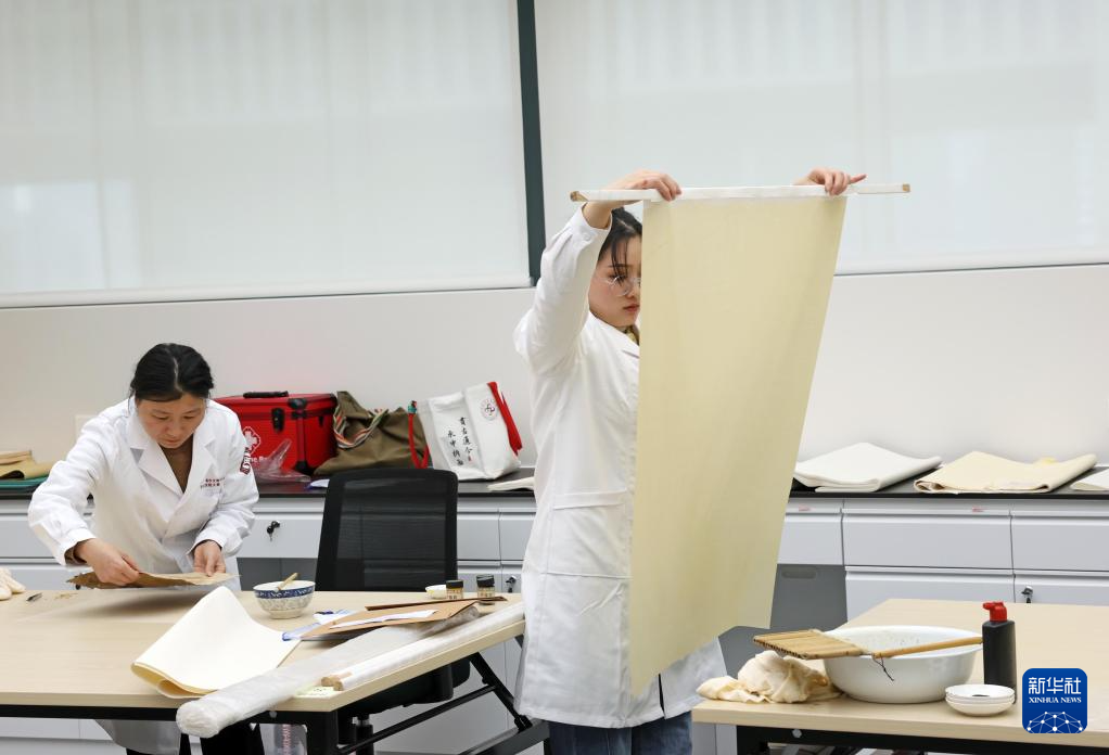 3月26日,选手在参加“纸张书画文物修复”实操考核。