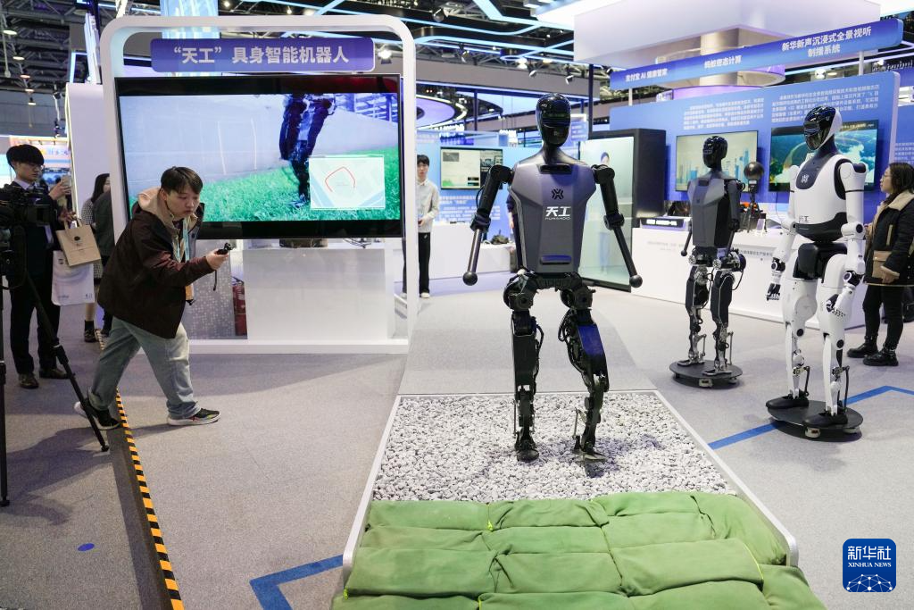 3月27日,在2025中关村论坛年会的中关村展示中心常设展内,人形机器人“天工”在进行行走演示。