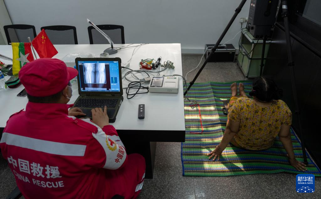 当日,多支中国救援力量在缅甸曼德勒开展医疗巡诊,为当地灾区民众提供“零距离”诊疗服务。