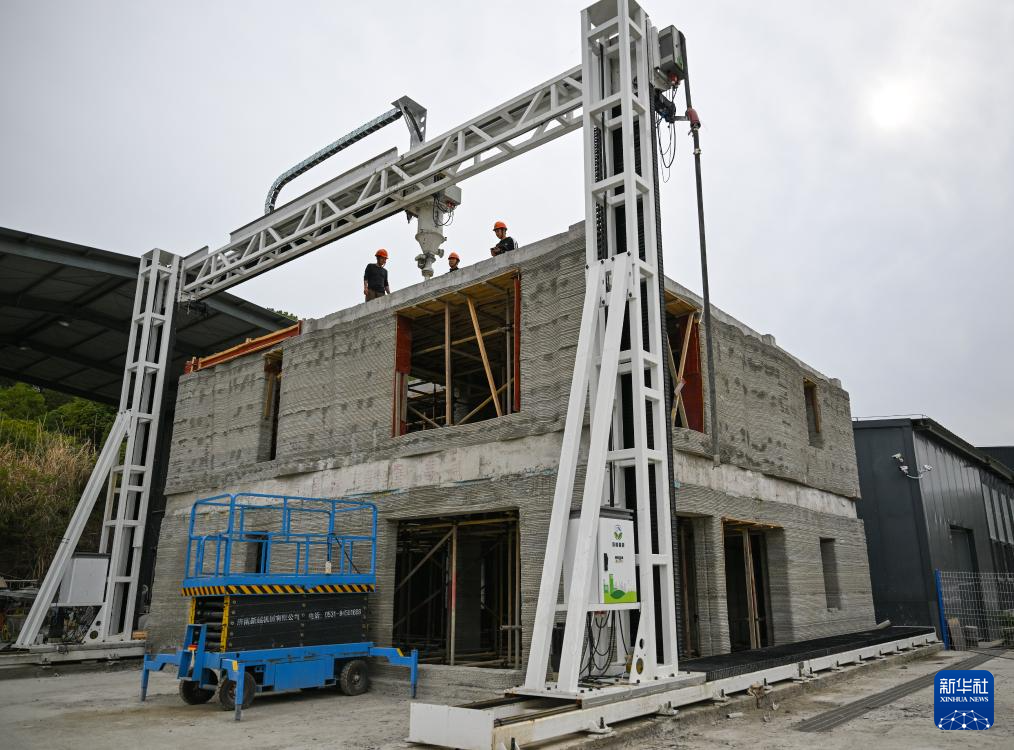 这是4月9日拍摄的3D打印机建设的双层小楼。
