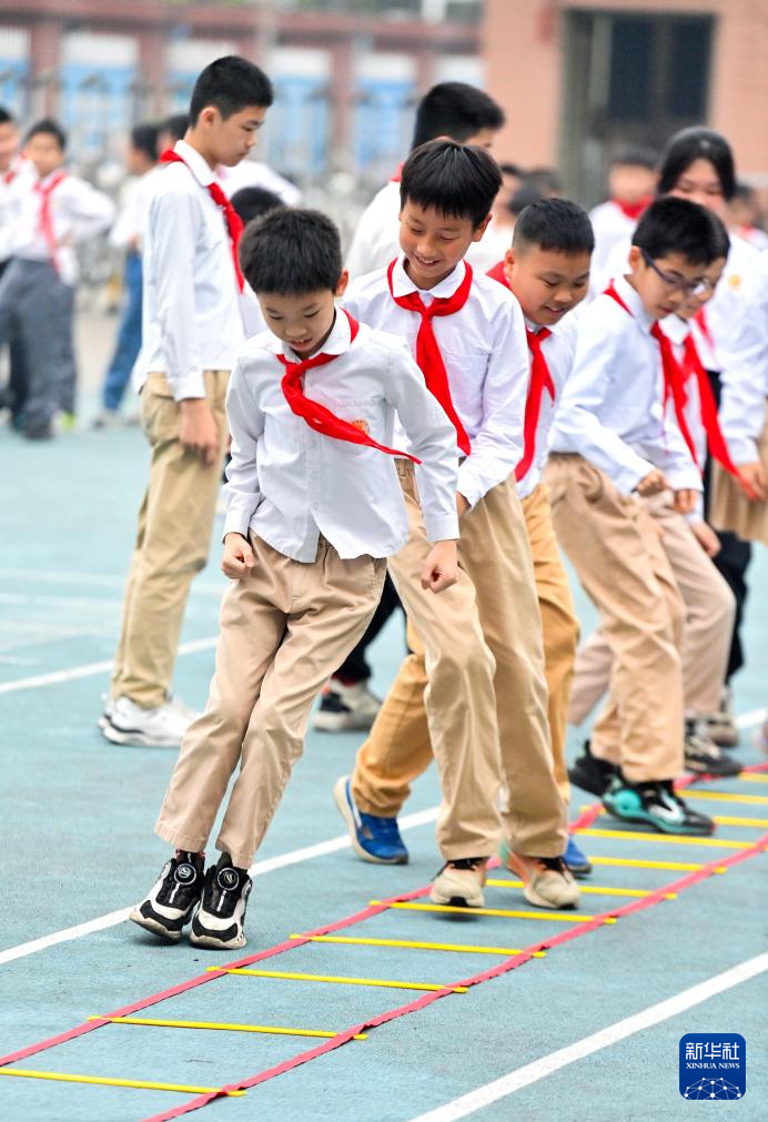 春日里,广西柳州市潭中路第二小学总部积极开展丰富多彩的阳光体育大课间活动,将啦啦操、武术操、跳绳、趣味游戏等项目融入体育运动中,提高学生身体素质,让孩子们在紫荆花盛开的校园里,快乐运动,健康成长。