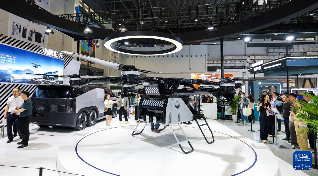 4月13日,在第五届消博会现场,观众在参观小鹏汇天展出的“陆地航母”。