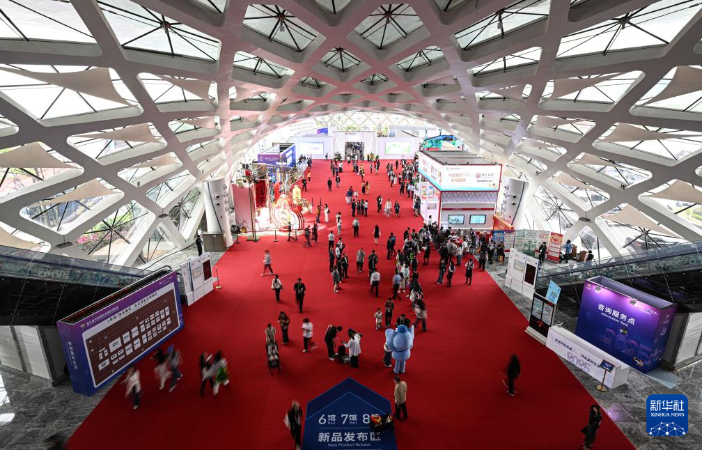 这是第五届中国国际消费品博览会外景(4月13日摄)。