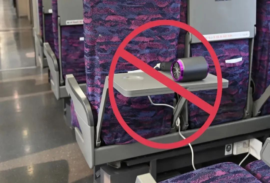 为方便旅客乘车,每节车厢都设有电源,由于列车上电器承载能力有限,禁止使用插线板和大功率电器。