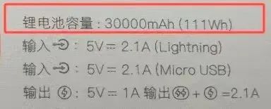 图为容量111Wh/30000mAh的充电宝不可以携带上车