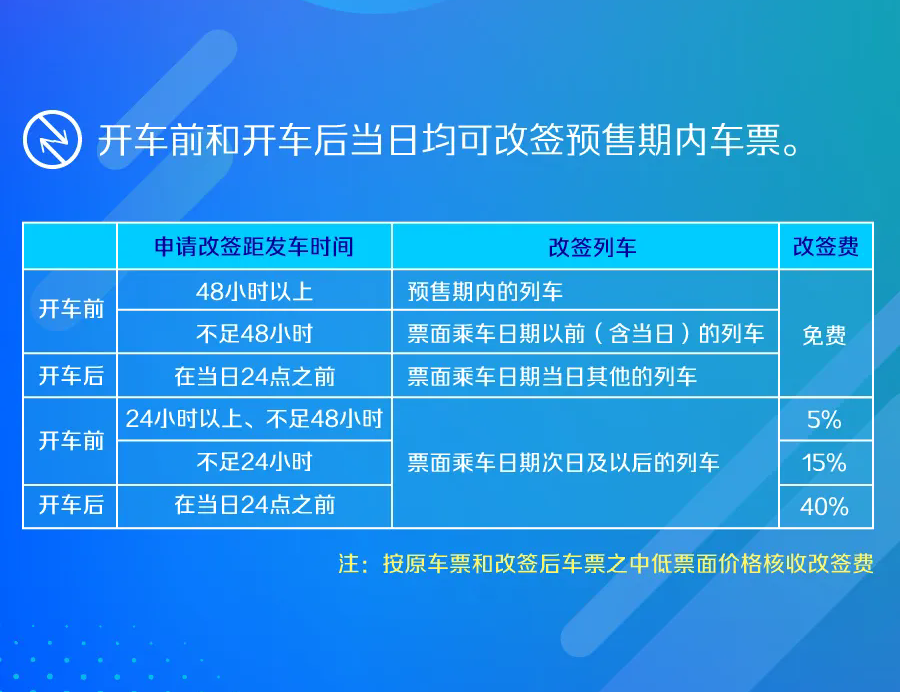旅客万一没赶上列车也不要着急,开车前和开车后当日均可改签预售期内车票。