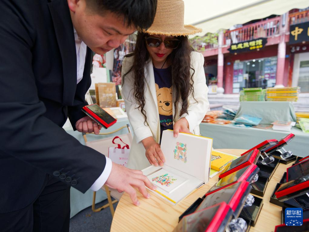 4月22日,市民在云南省昭通市全民阅读大会活动现场盖章打卡。