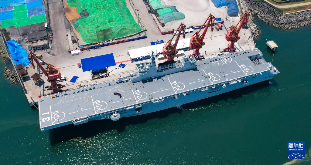 4月22日,在海南省澄迈县马村港散货码头,海南省为海军海南舰举行欢迎仪式,欢迎海南舰“回家”。