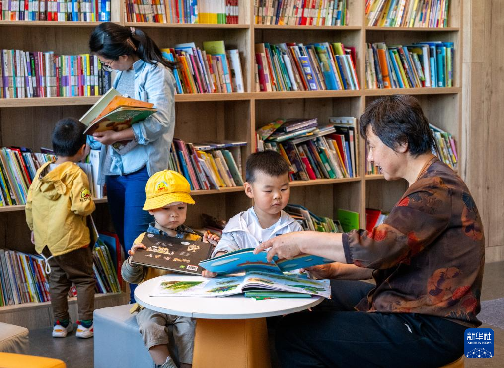 4月23日,家长和小朋友在北京市西城区的广阳书院阅读。