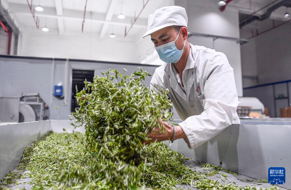 工人在曹丽琼经营的三江御香茶业有限公司制茶车间进行茶叶杀青(3月23日摄)。