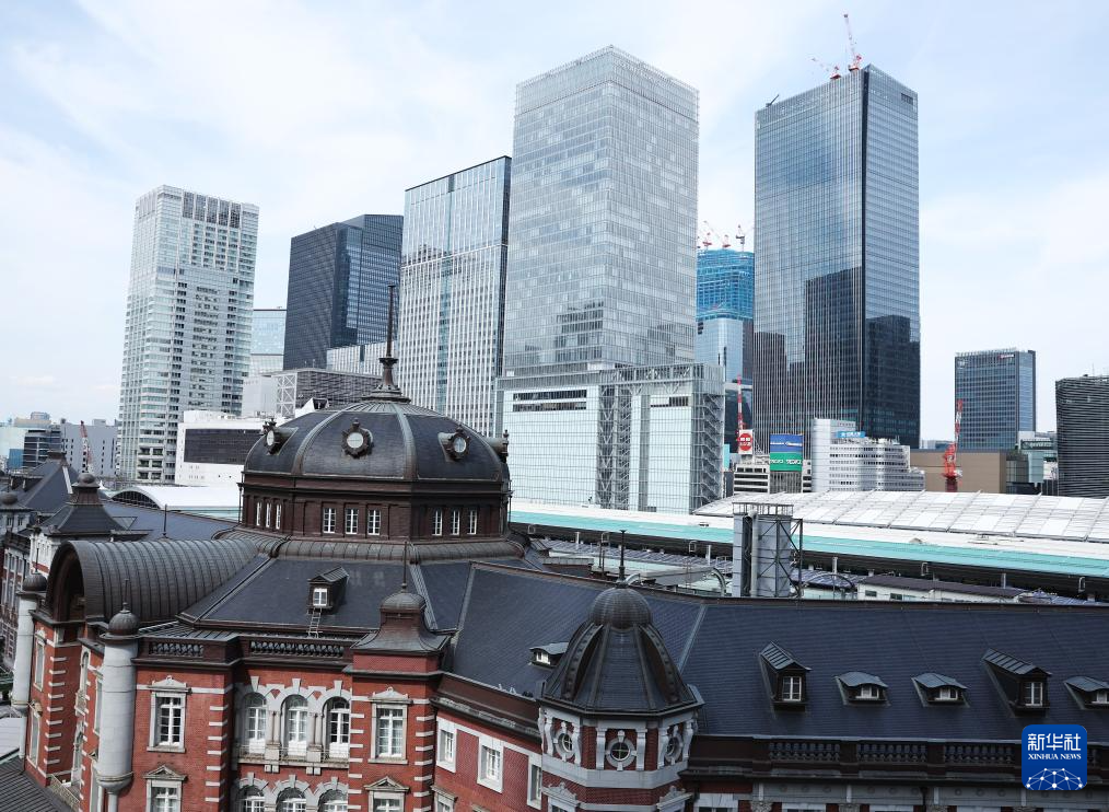 这是5月15日在日本东京的东京站附近拍摄的城市景观。
