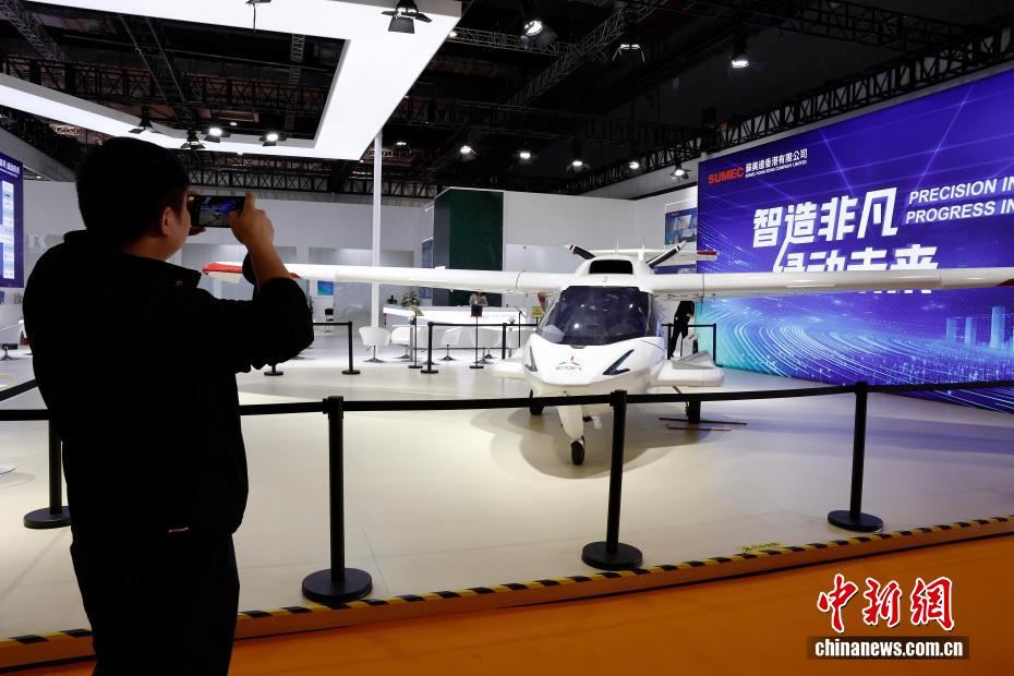 11月3日,工作人员用手机拍摄运动类轻型飞机。据悉,第八届中国国际进口博览会将于11月5日至10日在国家会展中心(上海)举办,展会的各项准备工作基本就绪,场馆布展工作已进入尾声。