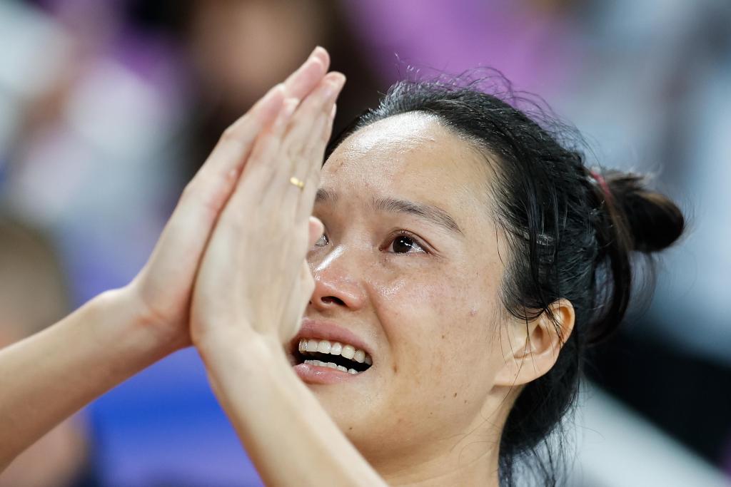 11月19日,山东队选手陈梦在团队夺得乒乓球女子团体冠军后落泪。新华社记者 梁旭 摄