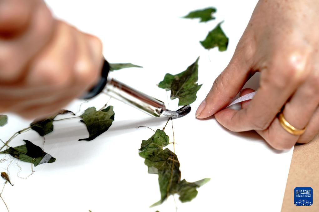 11月19日,工作人员在辰山中心装订植物腊叶标本。