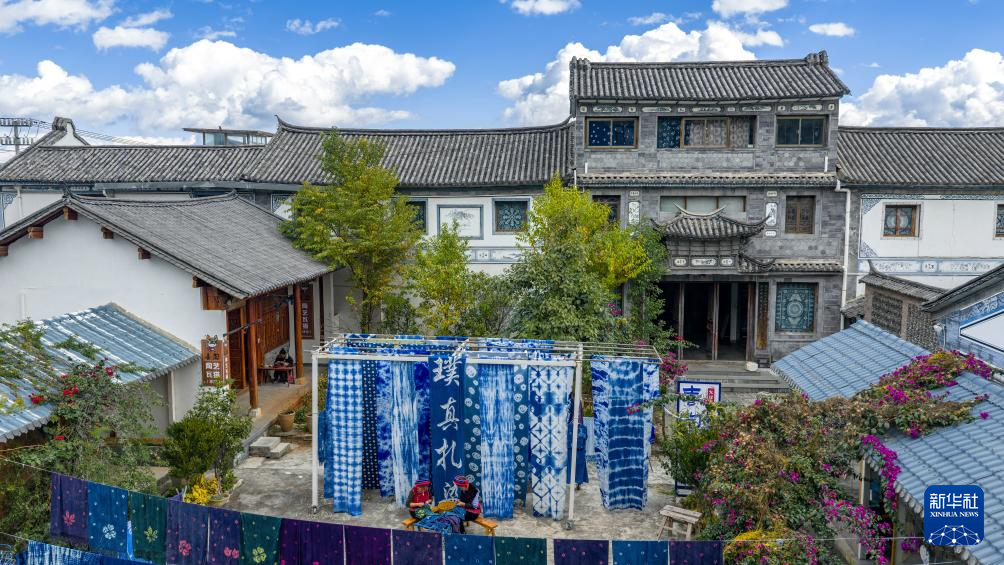 云南省大理市喜洲镇周城村“璞真染坊”一景(无人机照片,11月21日摄)。