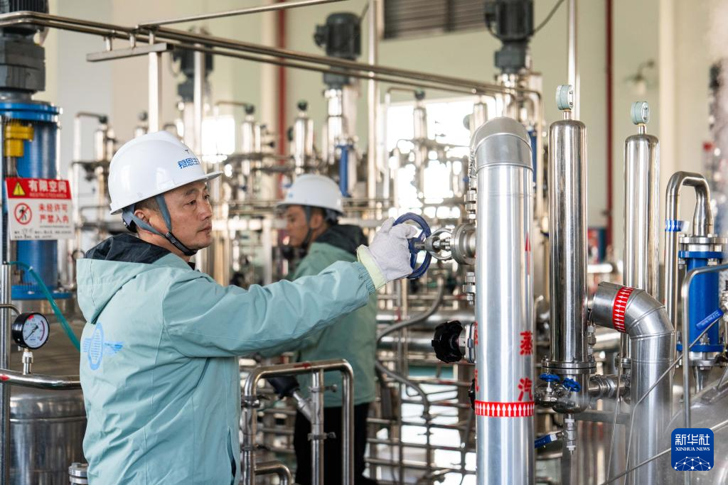 12月1日,在津市高新区的湖南慕恩生物科技有限公司液体发酵车间,工作人员进行种子罐蒸汽消毒作业。