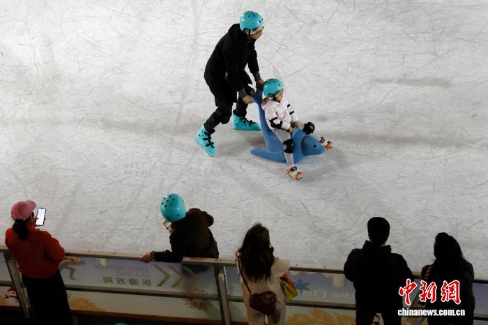 12月1日晚,孩子在滑冰。中新社记者 殷立勤 摄