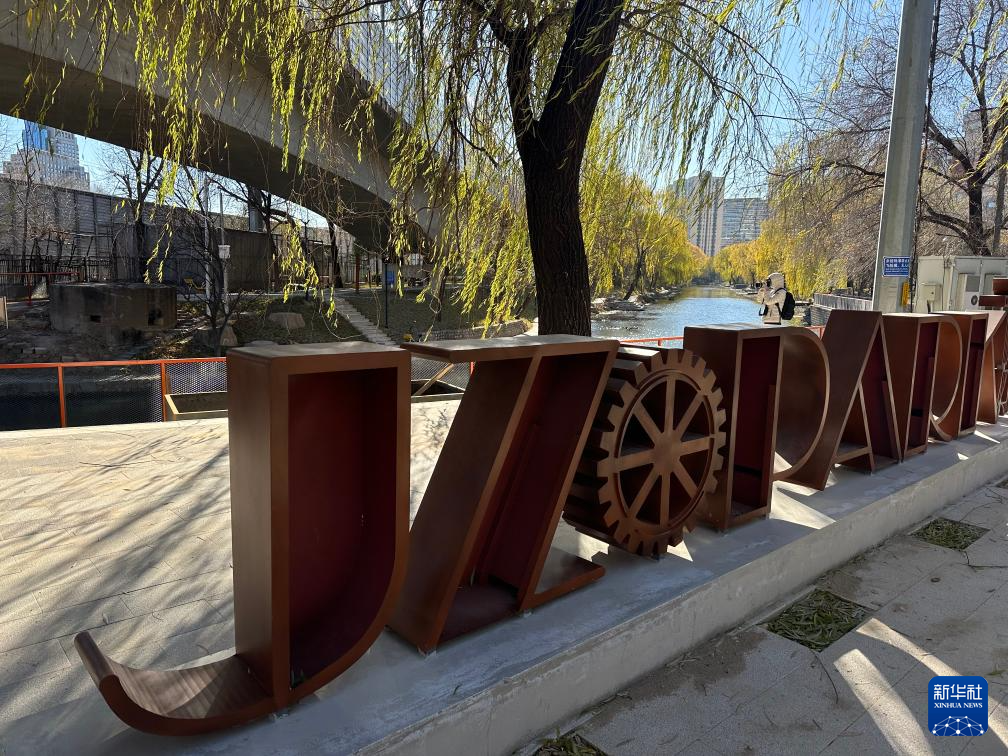 12月2日,在北京市西直门转河边,一名身穿冬服的游客在拍照。