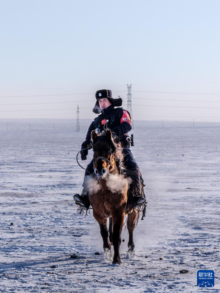 呵气成冰的清晨,寒风掠过内蒙古呼伦贝尔市陈巴尔虎旗的雪原,天地苍茫间,“海东青”骑警队开始了一天的工作。