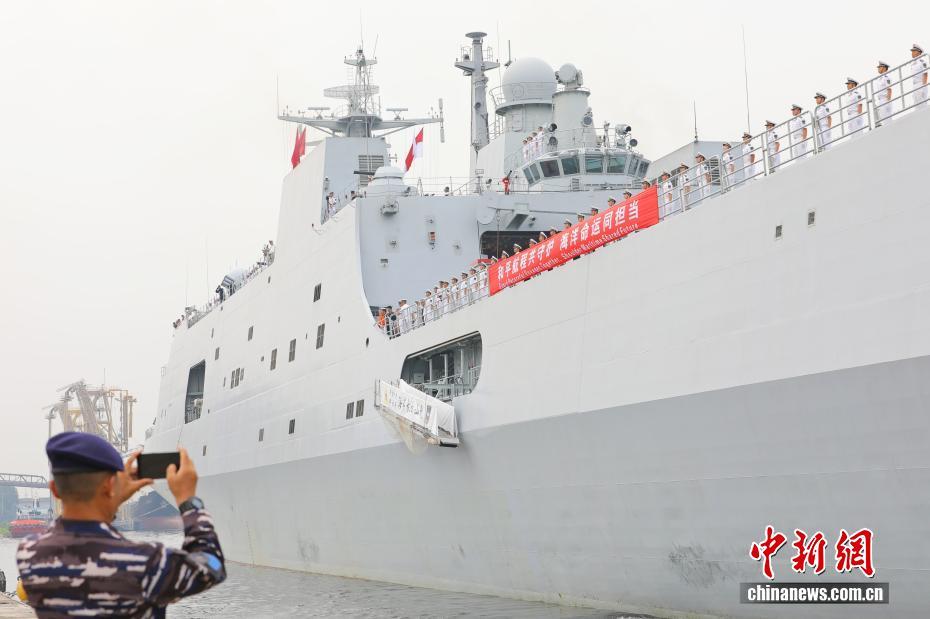 当地时间12月7日,正在执行远海综合实习任务的中国海军989编队抵达印度尼西亚雅加达丹戎不碌港,开始对印度尼西亚进行为期4天的友好访问。中国驻东盟使团工作人员、中国驻印度尼西亚大使馆工作人员、留学生代表、当地华侨华人代表、印度尼西亚海军官兵代表等400余人到码头迎接。