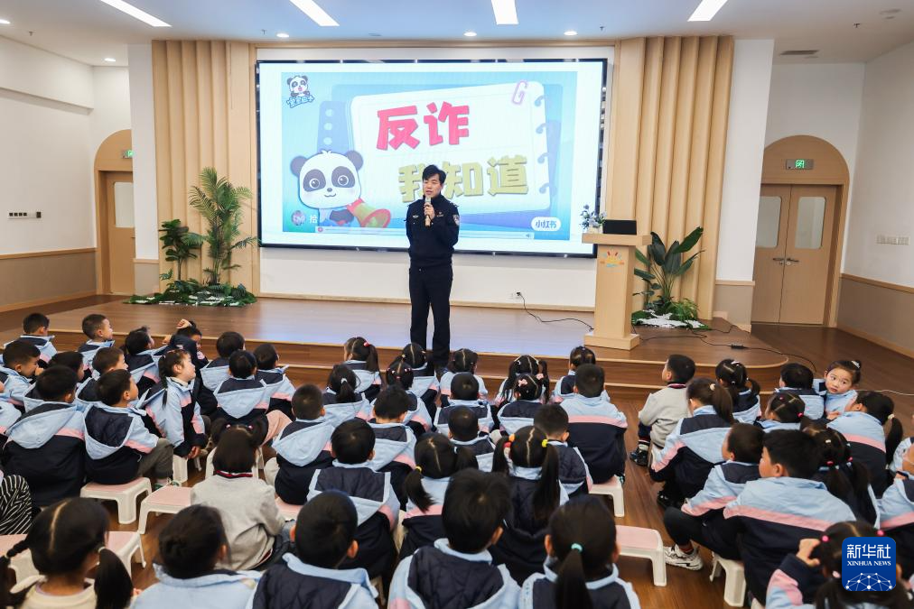 12月9日,诸暨市暨南街道派出所民警来到暨南街道中心学校三江幼儿园,给师生们举办防诈反诈知识讲座。