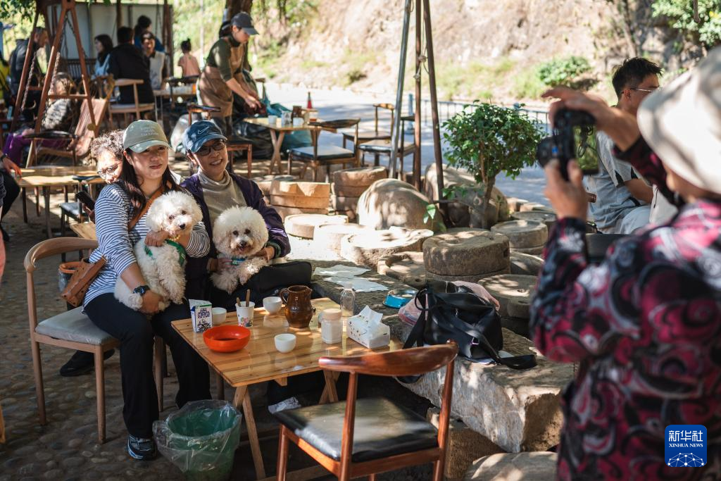 11月15日,顾客在位于云南省保山市隆阳区芒宽乡的“路边咖啡馆”拍照留念。