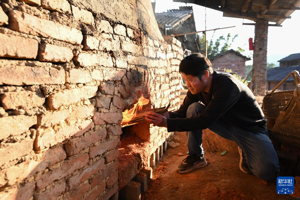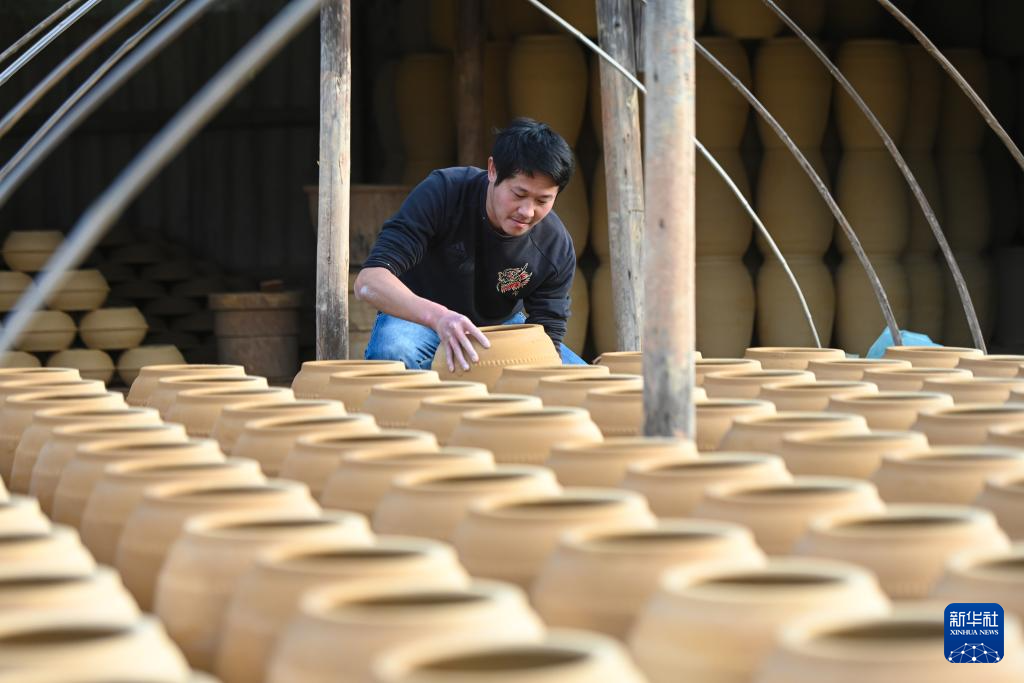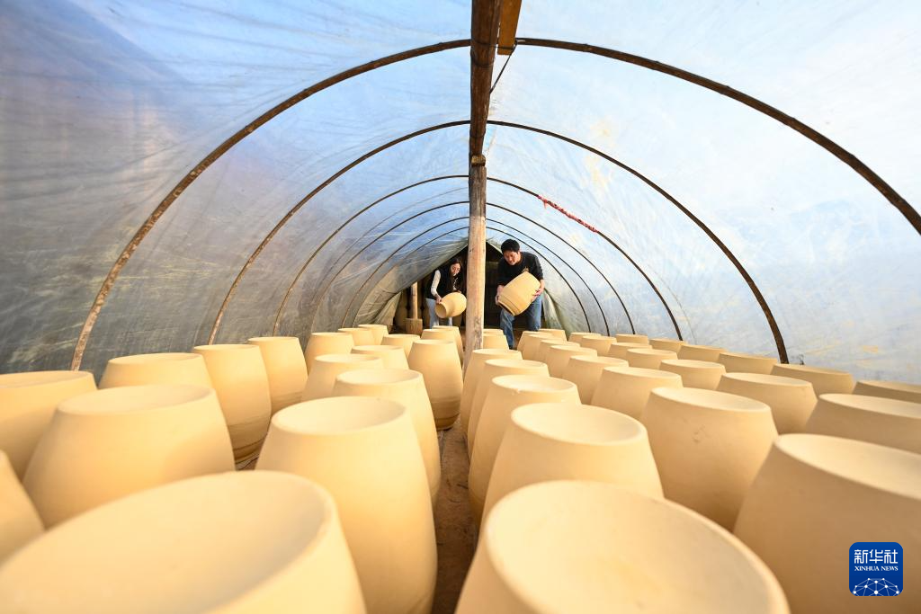 12月16日,吴泽缄和马静文夫妻俩晾晒陶坯。