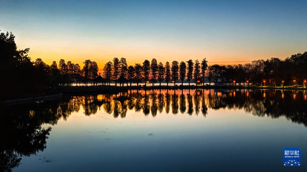 11月16日在武汉市东湖风景区拍摄的朝霞。