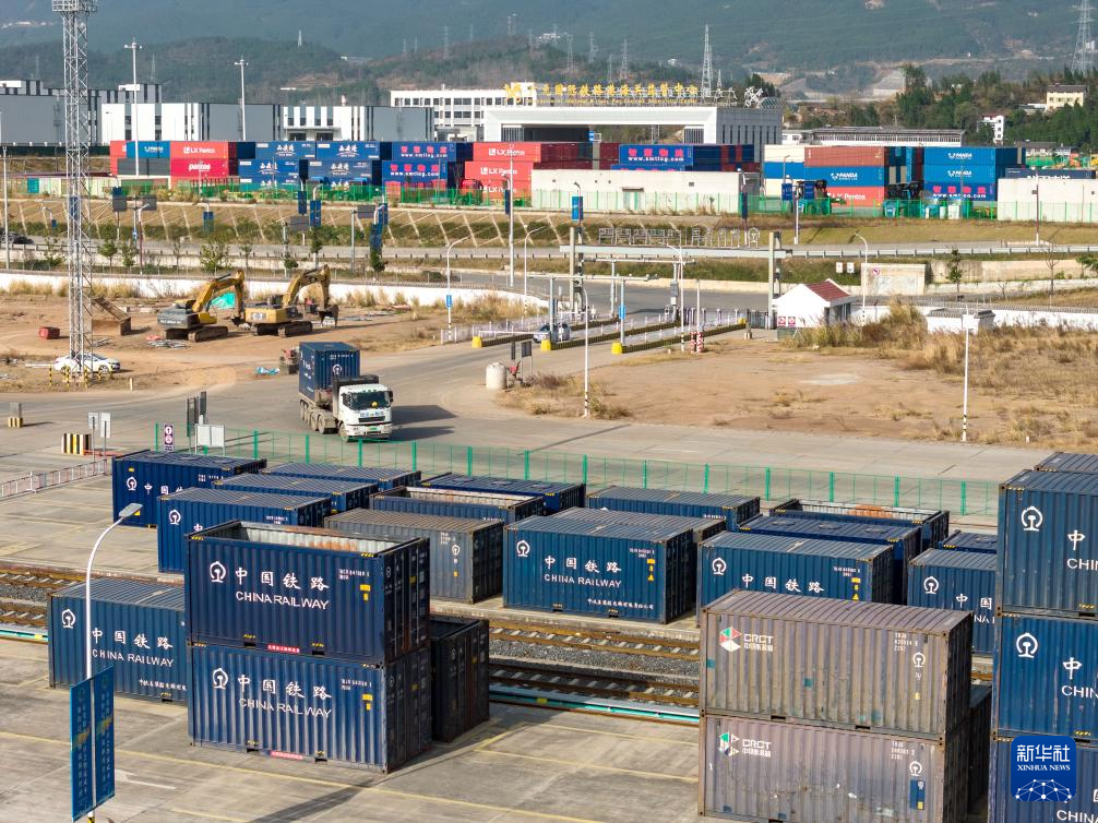 这是12月13日拍摄的四川省广元市国际铁路港(无人机照片)。