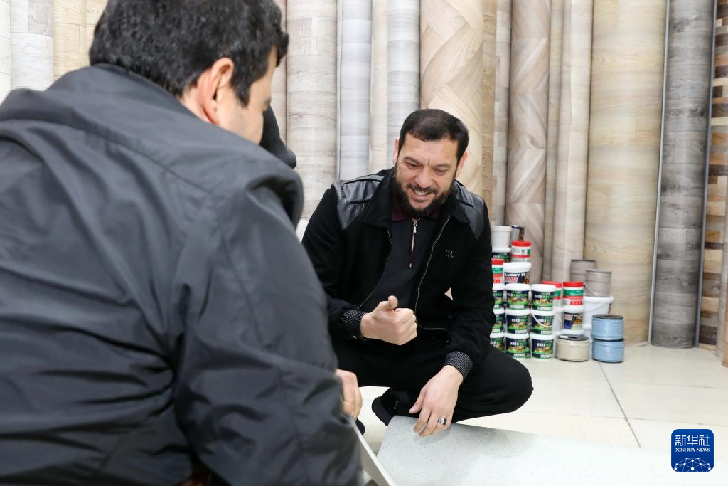 12月12日,在乌兹别克斯坦首都塔什干,当地商家塔什普拉托夫对广元出品的卷材地板竖起大拇指。