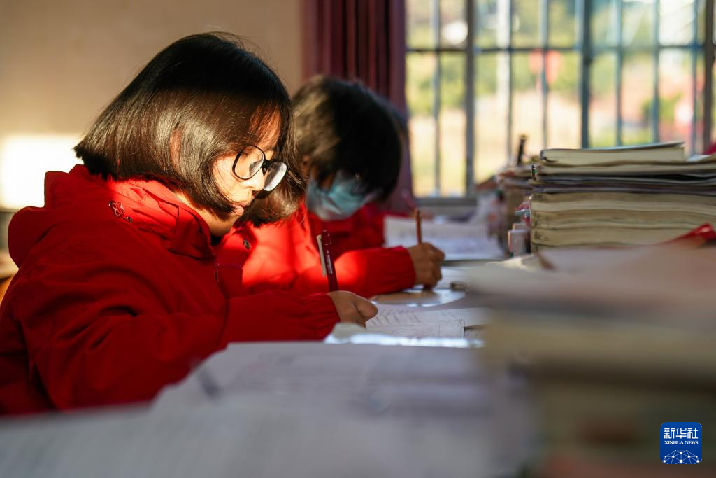 12月13日,华坪女高学生在课堂上修改错题。