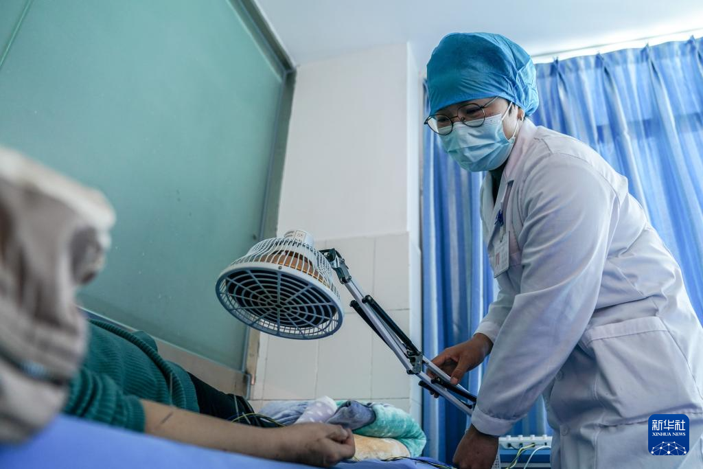 12月13日,华坪女高第一届毕业生、华坪县中医医院主治医师刘琪美在为病人治疗。