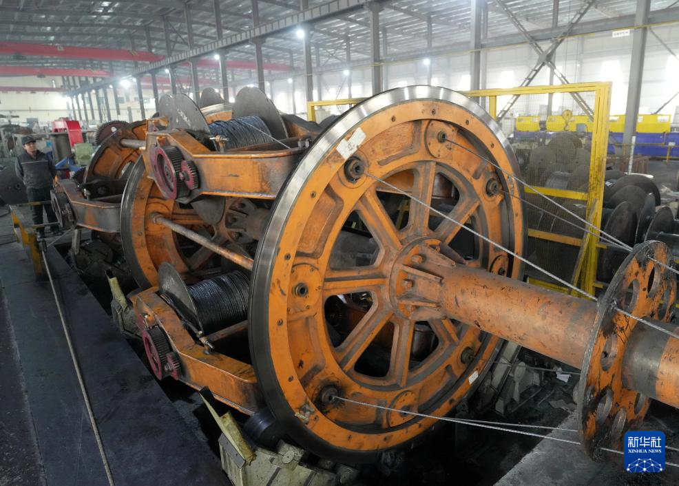12月23日,工人在河北省迁安市河北航纽特钢有限责任公司钢丝绳生产线上工作。