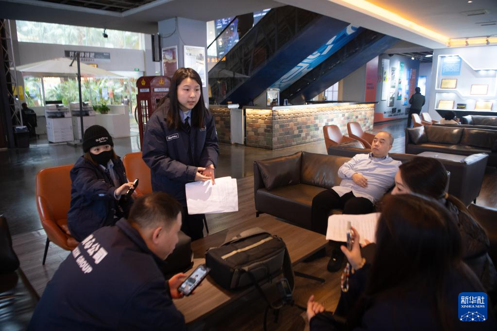 12月10日,唐和霞(后中)和同事讨论新产品海外推广短视频的创意方案。