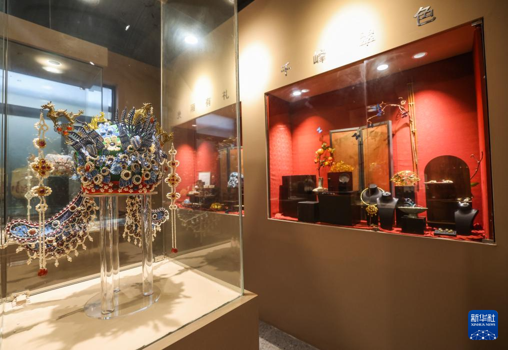 12月24日拍摄的位于匡堰镇倡隆村的楝树下艺术村落的花丝镶嵌非遗工坊的展厅。