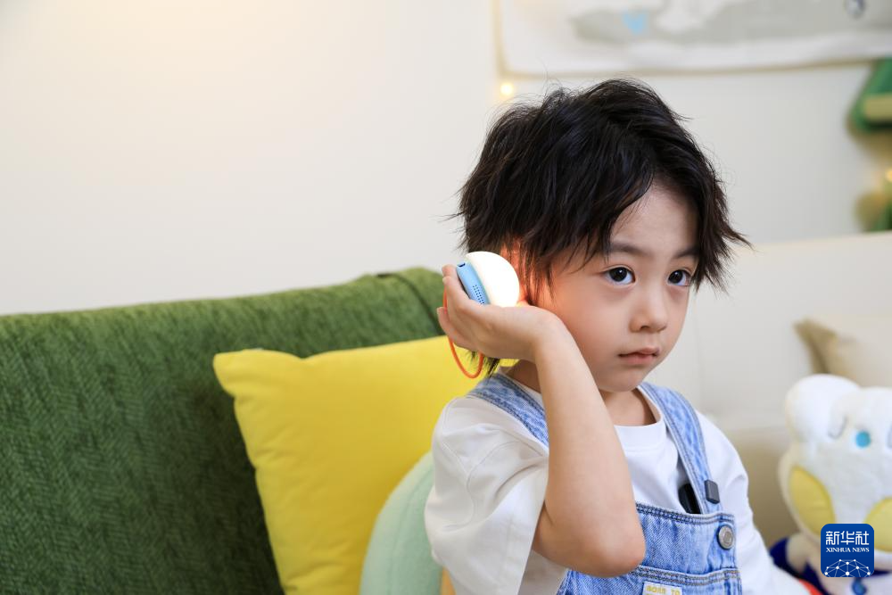 10月31日,在位于深圳的跃然创新科技有限公司Haivivi总部,一名儿童与该企业研发的AI玩具BubblePal互动。