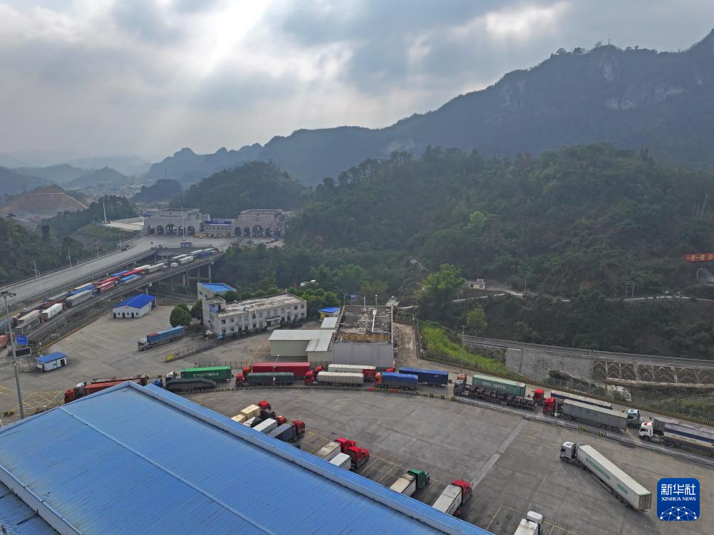 中越边境陆路通道上的广西凭祥口岸繁忙景象(2025年3月1日摄,无人机照片)。