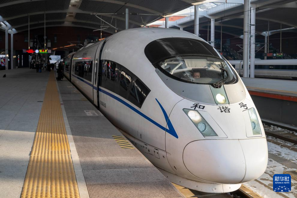 1月4日,首列“哈尔滨冰雪大世界”主题高铁列车G1276在哈尔滨西站正式开行,驶向终点站武汉。据悉,“哈尔滨冰雪大世界”主题高铁列车内外遍布冰雪大世界相关元素,成为流动的名片,助力冰雪经济融合升温。